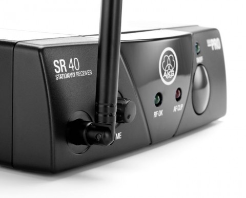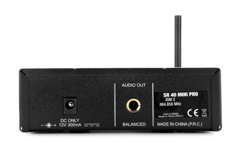 El led de estado del receptor SR40 mini muestra la siguiente información: encendido/apagado, enlace RF OK, audio clip, LED AF clip. La ganancia de salida en el jack de 6,3mm se puede controlar por medio de un interruptor. La fuente conmutada incluida funciona en el rango de 110-240 V con adaptadores para las zonas EU/UK/US.