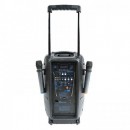 Altavoz mutlifunción en formato trolley con batería recargable y 2 micrófonos inalámbricos UHF. 300W de poténcia. Batería recargable. 1 entrada Mic In XLR . 1 entrada Mic/Guitar in ¼” jack. Ecualizador gráfico. Efecto Eco incorporado. Entrada Aux In. Reproductor MP3 Bluetooth ,SD y USB. FM Radio. Mando a distancia. 2 Micrófonos inalámbricos UHF incluidos. Volumen independiente por micrófono. Frecuencia 863-865Mhz. Indicador de nivel de batería. Ruedas y asa de transporte.